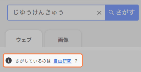 漢字がわからなかったり、ひらがなかカタカナか迷うときは、そのまま検索して大丈夫! 検索結果の前に「さがしているのは 〇〇?」と提案がでてくるよ。