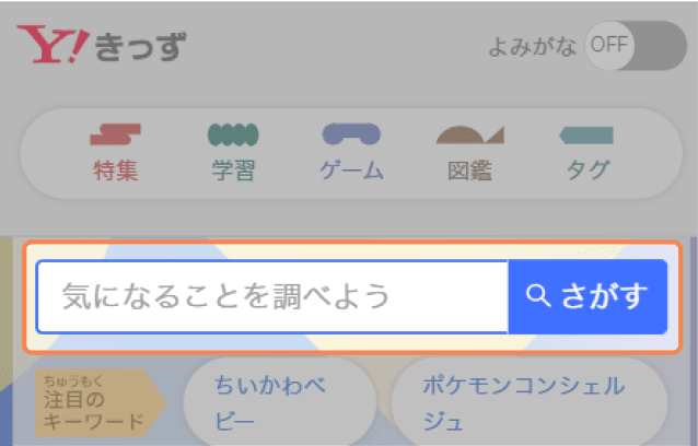 『気になることを調べよう』と書かれた検索窓を探してね。